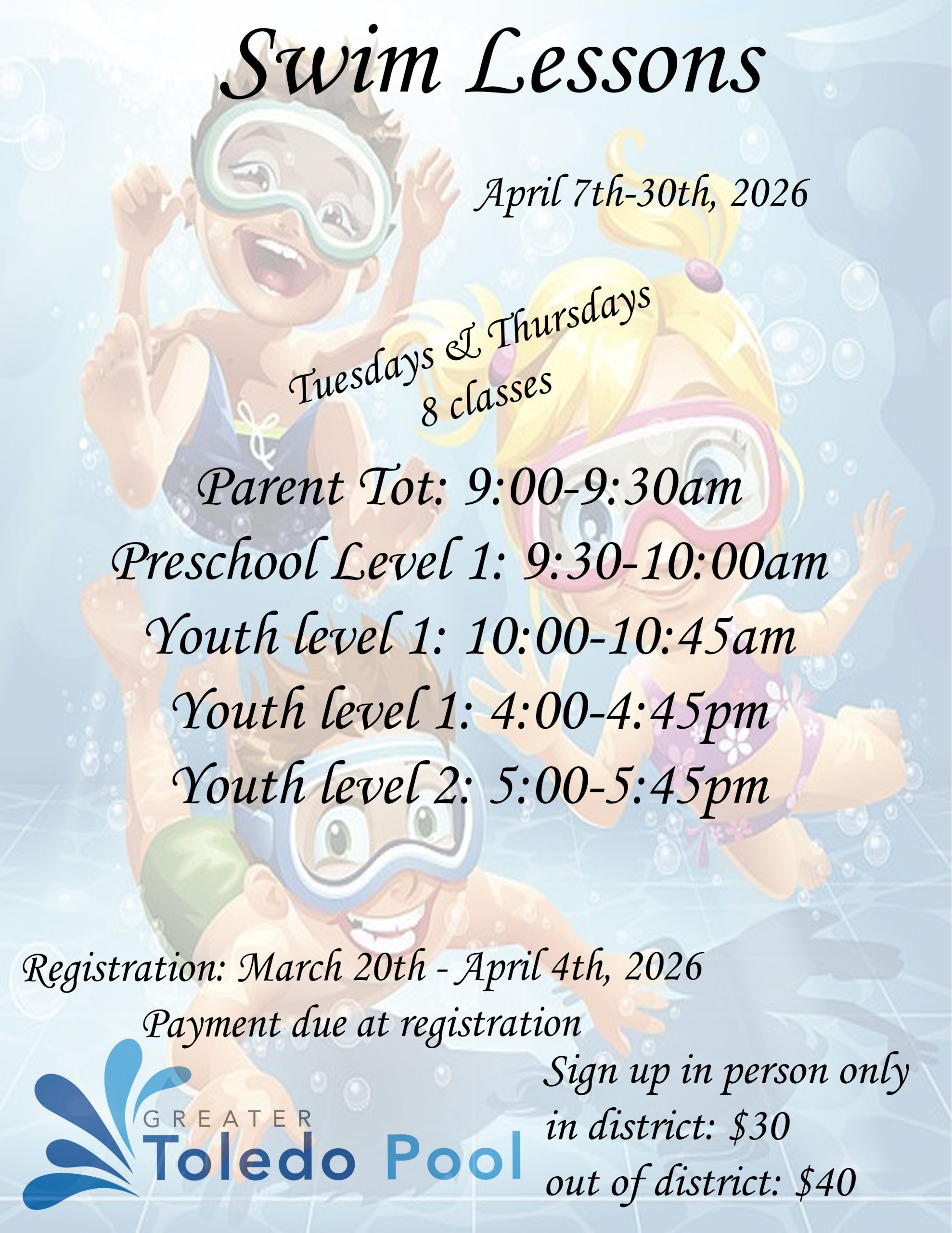 The Directors of the Greater Toledo Pool Recreation District, and the Friends of the Greater Toledo Pool (with the Toledo Community Foundation) have initiated a fundraising campaign for the new pool.