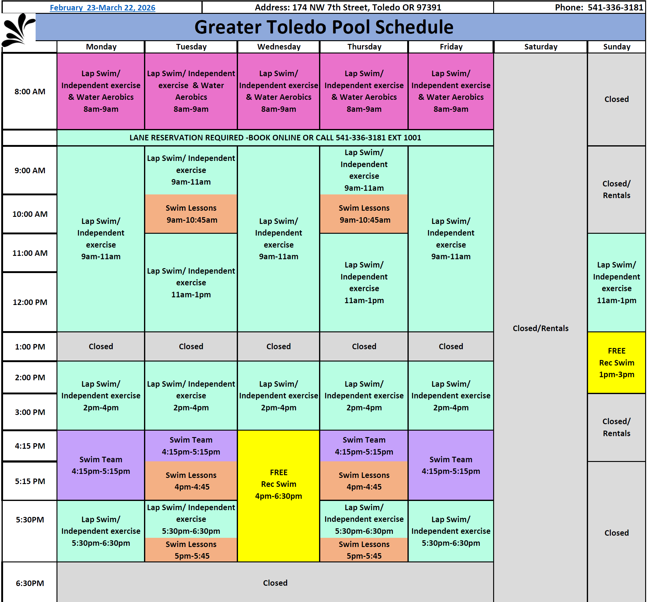 Greater Toledo Pool Patrons: 2026 is underway!! The schedule for the Pool for the month of January is attached. It […]