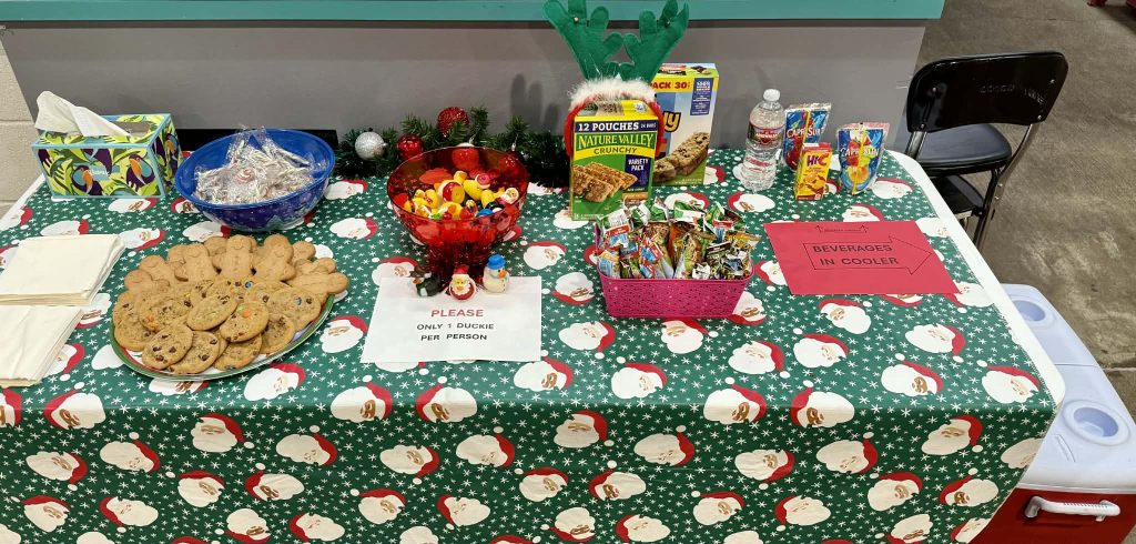 The “Santa Swim Party” last Tuesday was fun for those who were able to make it! It was a smaller than expected turn-out, but those who came seemed to have a really fun time. there were snacks and beverages, cookies, and games to play on the pool deck. Three lucky families won the Door Prizes; and several people took pics with Santa!