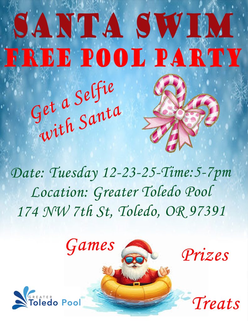 The “Swim with Santa” Christmas Party will be held at the Pool from 5:00 – 7:00 p.m. on December 23rd ….