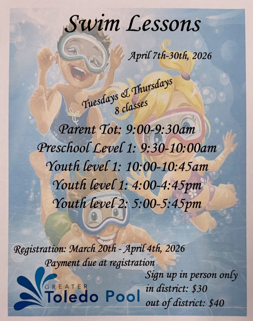 The next session of Swim Lessons will begin the first full week of April.  If you’d like to register your youngsters for lessons please note the registration time on the flyer below.