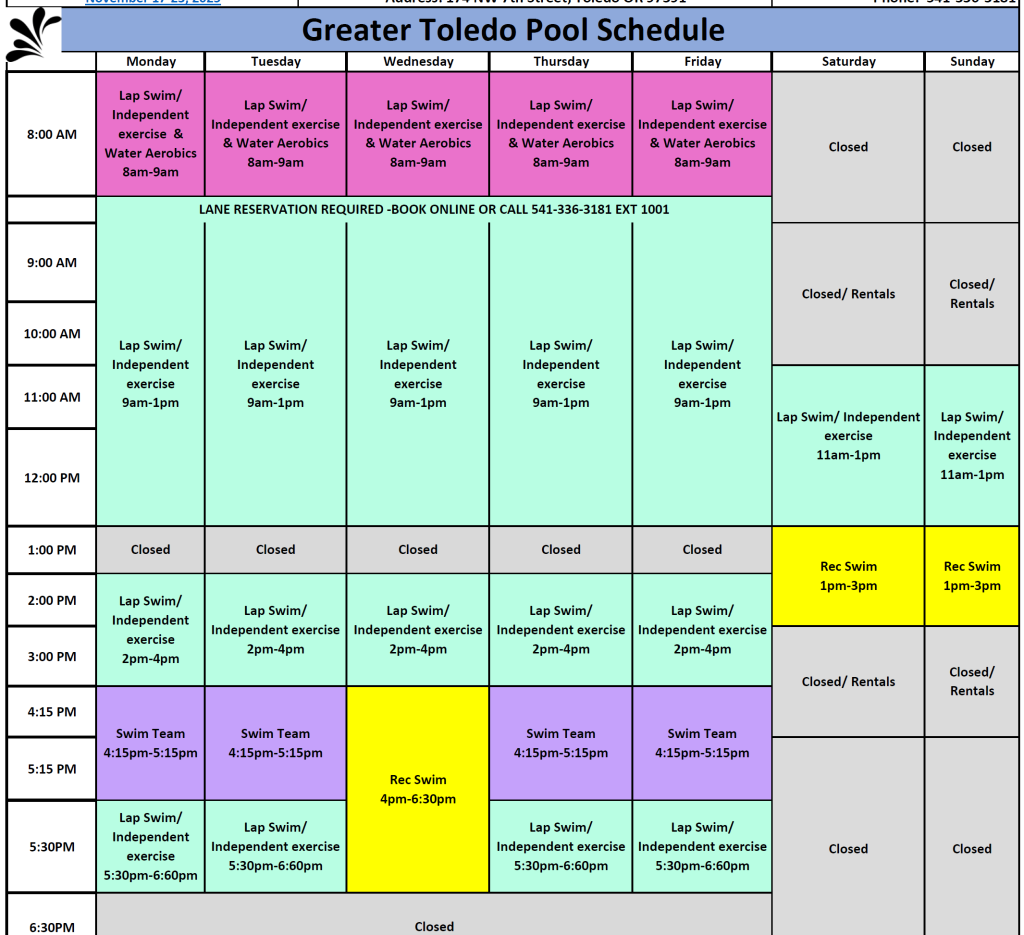 and all of December is now available for Independent Exercise and Lap Swimming.  Please see the schedule below!
